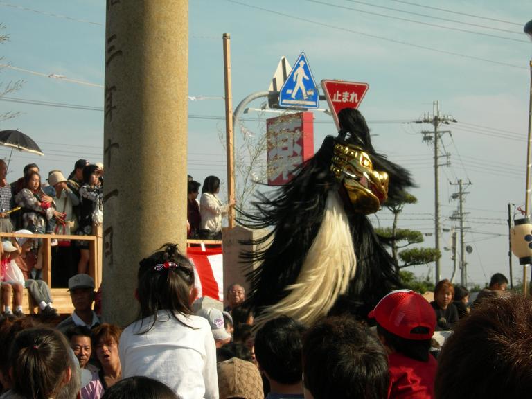 といっても、いきなりやたら細かい話題から入っても、大塩天満宮秋祭りを見たことがない人には、何のことかサッパリわかりませんので、今回はサラッと概略だけをレポートします。 まずは、雰囲気をつかんでいただくために、ありきたりな写真からご紹介しましょう。上の写真は大塩天満宮の西隣に位置する大塩公園で、10月14日の16:10に撮影したものです。見ての通り、3台の屋台が練り合わせています。まあ、それだけのことです。強いてコメントするなら、向かって左の屋台が白木なのは、今年その部分を新調したからです。 次は獅子舞です。上の写真は、10月15日の14:47に大塩天満宮の鳥居のところで撮影したものです。左後方の太い石柱が鳥居です。どこの丁のものか忘れてしまいましたが、この写真の前後に撮った(没)写真には「牛谷」の提灯が見えるので、多分そうなのでしょう。 そしてもう一枚、夜間の写真を掲載しておきます。シャッタースピードを上げると真っ暗になってしまうので、かなりブレていますが、雰囲気だけは掴んでいただけるかと思います。ご覧の通り、屋台には電飾が施され、ただでさえド派手なデザインが、さらに派手になります。 大体、こんな感じのパフォーマンスが、延々2日間に渡って繰り広げられます。実際には、神社への奉納やら何やらの神事が行われるわけですが、大多数の見物客にとっては、そんなことはどうでもよいでしょうから、事実上これだけのことです。 というわけで、次回は、この大塩天満宮秋祭りの裏側を見ていきたいと思います。 PR |