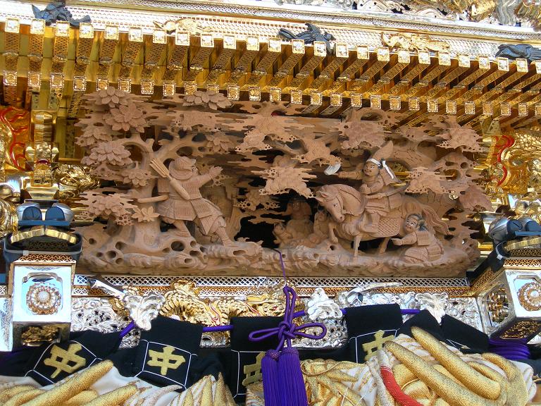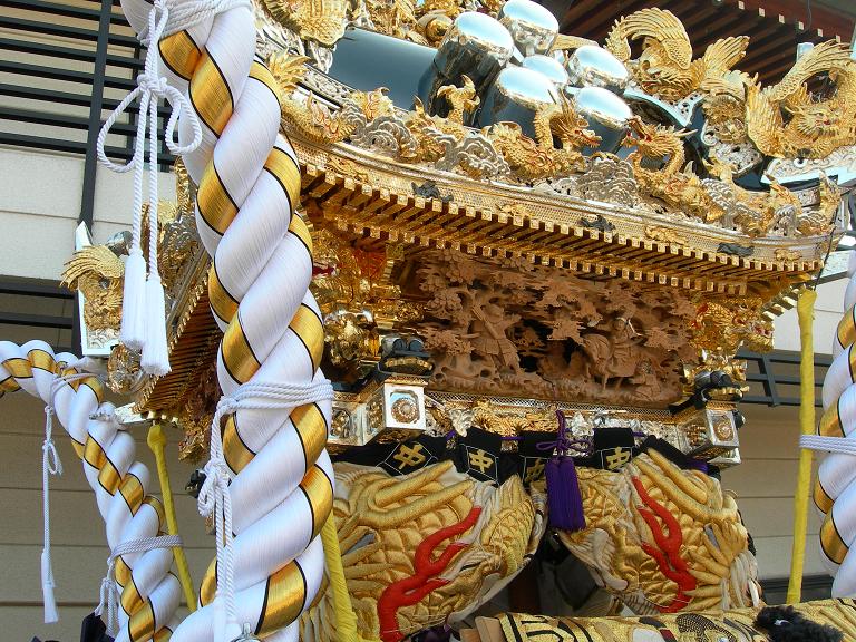前回に引き続き、大塩天満宮秋祭りの話題です。前回は概略的なレポートだけでしたので、今回はもう少し突っ込んで、屋台のディテールに迫ってみたいと思います。屋台の写真は、大抵が遠景ばかりで、細かな装飾がどのようになっているのかまではよく分からないことが多いと思います。そこで今回は、かなり細部まで分かるアップの写真を公開したいと思います。